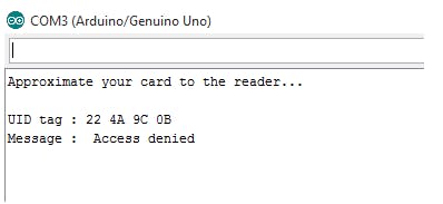 Si aproxima otra etiqueta con otro UID, aparecerá el mensaje de denegación: